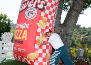 The poolside bash featured a pizza station by DOUGHBRIK’s pizza, a Cloud23 hot sauce station by Chef Luke Thomas where he served “Loco Wavers” pickle-inspired delights using the hot sauces on Spicy Pickle Wavers with toppings piled on, such as cucumber and jicama. The event engaged guests with games such as Lifesize Connect Four, Pickleball, and cornhole, 12 foot high blow up versions of his four signature snack flavor bags, DJ music sets by Sebastian Topete and Jack Henry, a sea of orb balloons, and an abundance of Wavers snack stations at every turn. The bar featured cocktails by Adam Vodka, Olmeca Altos Tequila, Jameson Irish Whiskey, Skrewball Peanut Butter Whiskey, MALIBU rum, Beefeater Gin, and Peroni Nastro Azzurro beer, plus Celsius energy drinks.